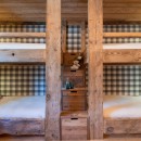 Bedroom 4: Lower floor bedroom with two bunk beds, WiFi, mountain view, and shared bathrooms with shower, vanity and shared WC. 4 children maximum