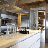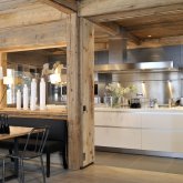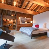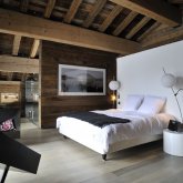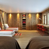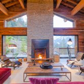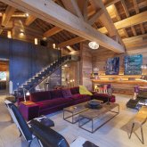 Chalet Grand Cerf faces south to capture the warming rays of the sun, and multiple terraces provide inspiring views of the sunset and the surrounding mountains. The spacious interior features an entrance hall with storage for coats and shoes. The third level living room with cathedral ceilings is highlighted by a warming fireplace, comfortable seating and two game tables. The sleek, ultramodern kitchen is perfect for self-catering or for food preparation by a professional chef, and the dining room offers a fireplace and large picture windows.