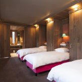 Bedroom 4 : Second floor bedroom with four single beds, desk and en-suite bathroom with double shower, double vanity and WC. 2 guests max.