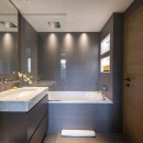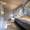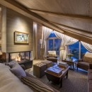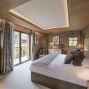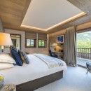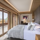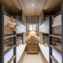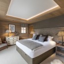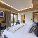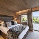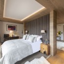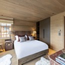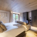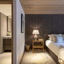 The first floor includes the first of two primary sleeping areas. Each of the four bedrooms is individually designed with luxurious fabrics and sophisticated lighting, creating a stylish yet cozy mountain retreat. This floor features two twin/double bedrooms with en-suite shower rooms, marble vanity units, and private balconies; a third double bedroom; and a bunk room, with the latter two sharing a bathroom.