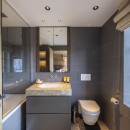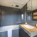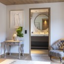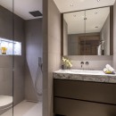 On the second floor, the spacious master bedroom suite offers a serene retreat with a warm color palette and a relaxing atmosphere. It includes a generous dressing room and a luxurious en-suite bathroom with a separate double shower and a Japanese WC, with marble accents adding a touch of opulence. Additionally, there is another double bedroom with an en-suite bathroom and a twin/double bedroom with an en-suite shower room, each thoughtfully designed to complement the overall aesthetic.