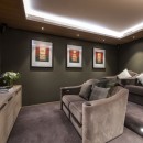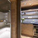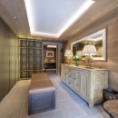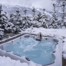 On the ground floor, you enter through a welcoming hall with ample ski storage and boot warmers. This level also features a dedicated cinema room with custom electric reclining seats, a hammam, a spa shower, and a massage treatment room. An outdoor heated path leads to the chalet’s eight-person hot tub, ideal for unwinding after a day on the slopes. Additionally, there is a private laundry room on this floor.