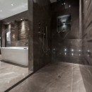 Bedroom 3: First lower floor Master bedroom with a king-size bed, access to balcony with mountains view and en-suite bathroom with bathtub, shower, double vanity and WC. 2 guests maximum.