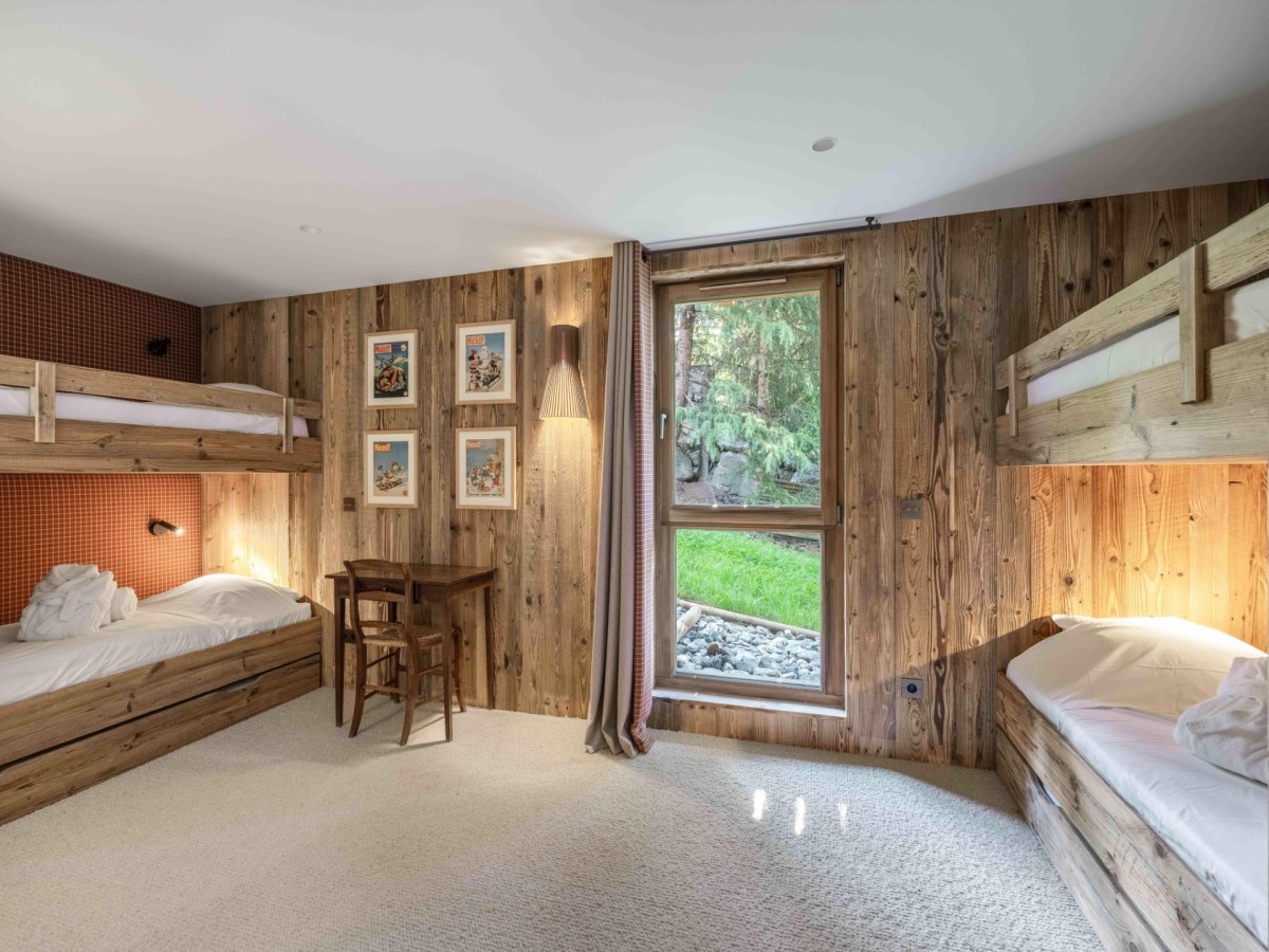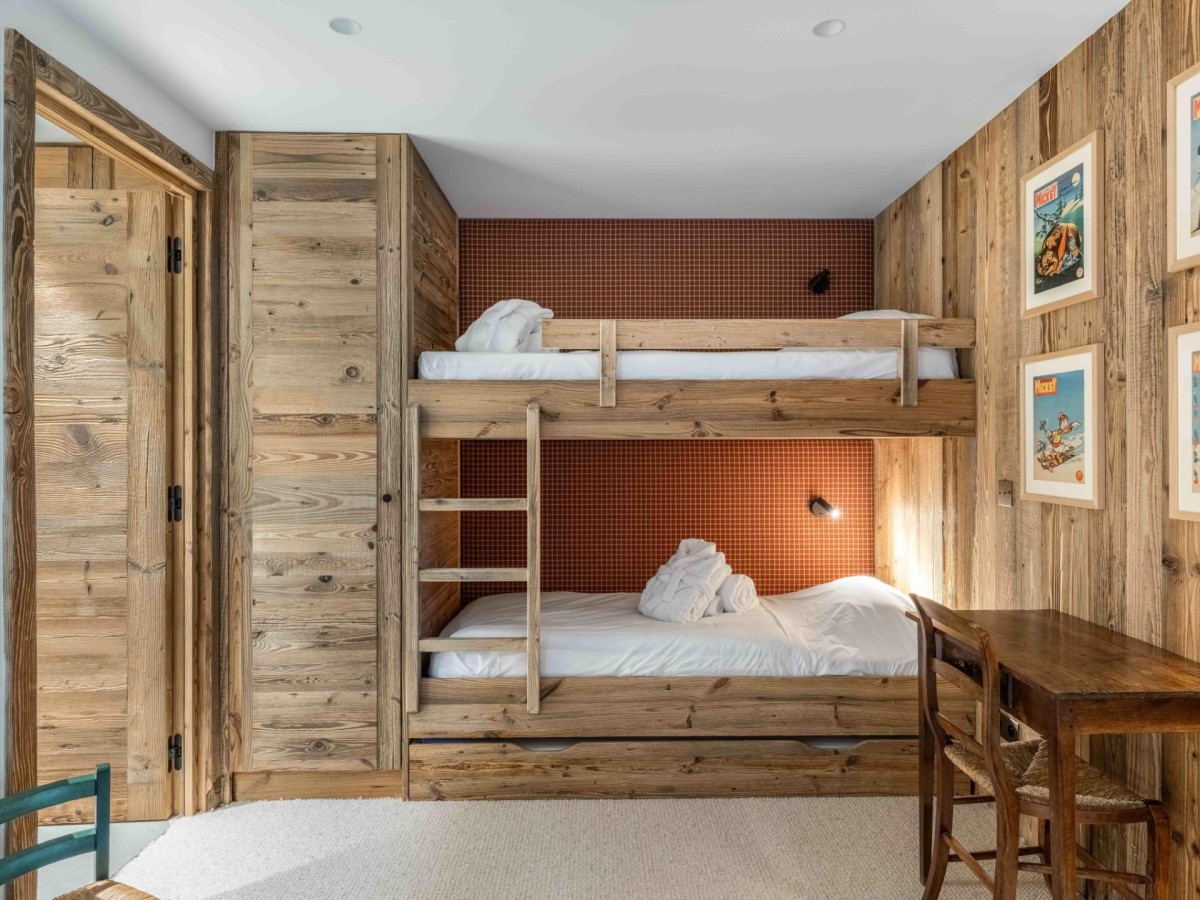 Bedroom 5: Bedroom with two bunk beds, WiFi, and en-suite bathroom with bathtub, vanity, and WC. 4 children maximum