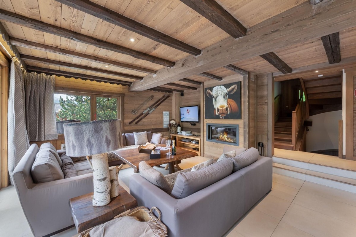 Spread across three levels, the chalet comfortably accommodates 8 adults and 2 children, making it an ideal choice for families or small groups. Inside, the warm and inviting living spaces evoke the charm of a traditional mountain refuge, blending comfort with authentic alpine character.