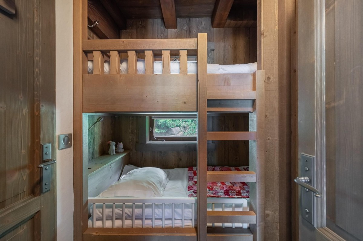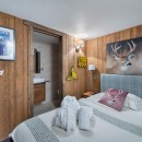 Bedroom 3: Second floor Cabin bedroom with a bunk bed, WiFi, and en-suite bathroom with walk-in shower, vanity, and WC. 2 guests maximum