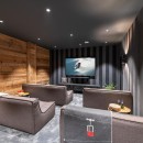 As you enter the chalet and pass the boot room, you can take the elevator to the first floor, which features a fully equipped gym. Alternatively, head to the second floor, where the heart of the chalet awaits. Here, a state-of-the-art cinema room comfortably seats 12 and includes a cocktail bar, with additional seating at the bar stools. This floor also offers a spacious bunk room for four, complete with an en suite bathroom. On the next floor, you'll find four en suite double bedrooms, each with a balcony to soak in the breathtaking views.