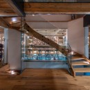 To realize this dream, a central staircase, carved from 370 million-year-old Caithness sedimentary stone from the Northern Highlands of Scotland, was introduced into the heart of the building.