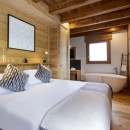 Bedroom 1: First floor Master bedroom with a double bed, WiFi, TV, mountain view, private balcony, free standing bathtub, and en-suite bathroom with shower, double vanity and WC. 2 guests maximum