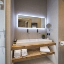 Of course, this is a property well-suited to skiers and non-skiers alike thanks to the luxury amenities spread throughout the many floors. There is the spa and wellness area with its indoor pool, spa treatment room, hammam, ice chamber and “Bramford Spa” with beauty and massage treatments. Just outdoors is the hot tub and a barrel sauna that allows you to enjoy the scenery from within the warmth of the sauna. The property also features a fitness center and forest and garden trails outdoors.