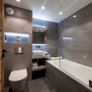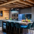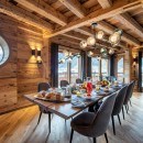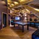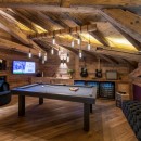 ZEMS Lodge comfortably accommodates up to 8 adults and 6 children, with four main bedrooms and two additional triple bunk rooms. Despite its grand scale, exceeding 500 square meters in total, the chalet is artfully divided into intimate zones. This thoughtful layout ensures that even smaller groups can savor their time here without feeling overwhelmed by the expansive property. In addition to the main open-plan living, dining, and sitting areas, there's a separate bar area complete with a pool table and a cozy TV snug. For those seeking a more cinematic experience, a dedicated cinema room awaits.