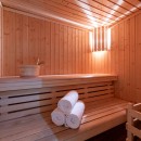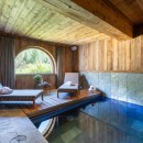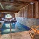 On the ground floor, you'll find a well-equipped boot room, a cosy TV/games room with a projector and pool table, and a separate wellness area. The indoor pool, surrounded by lounge chairs and mountain views, is complemented by a sauna and hammam—perfect for post-ski recovery.