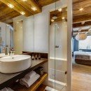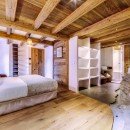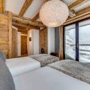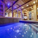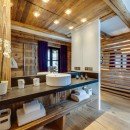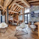 The interior spaces are a symphony of elegance; the chalet spans across four levels, revealing a grand open-concept living and dining domain on the uppermost floor. Descending below, a quintet of ensuite bedrooms awaits, with one ingeniously nestled into the very cradle of the river-hewn rock face. The lowest tier unveils a beguiling retreat featuring a sophisticated pool and a tranquil hammam. Situated merely 150 meters away from the Le Fornet cable car, the chalet also offers the luxury of skiing right to its doorstep, courtesy of the Mangard ski run.