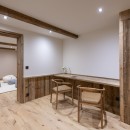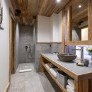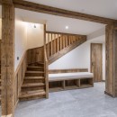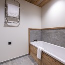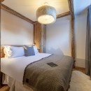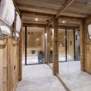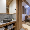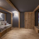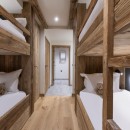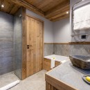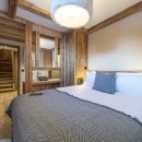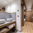 Descending to the third floor, you'll find a double master bedroom with an en-suite bathroom featuring a separate shower and a TV. Two additional double bedrooms, each with en-suite shower rooms and TVs, as well as a guest WC, complete this floor. The bedrooms, designed with a neutral color palette and prominent wood finishes, evoke an alpine-chic chalet ambiance.