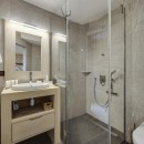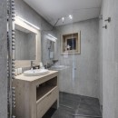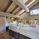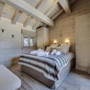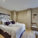 The five double ensuite rooms mirror the chalet's aesthetic, embracing the prevalence of wood and judicious color accents that enliven the space. Comfortably accommodating ten adults and a child, they epitomize luxury.