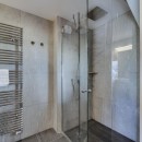 Bedroom 3: First floor bedroom with a queen-size bed, A/C, WiFi, and en-suite bathroom  with walk-in shower, vanity, and WC. 2 guests maximum