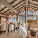 Designed with natural wood, rich textures, and cozy Alpine charm, the open-plan living and kitchen area is the heart of the chalet. Here, you can relax fireside with a glass of bottomless Perrier-Jouët Champagne, soaking up the inviting atmosphere as your private chalet team prepares a bespoke two-course dinner tailored to your tastes.