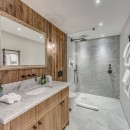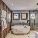 On the ground floor, discover a serene wellness space featuring a chlorine-free indoor swimming pool, powered by ozone technology for a fresh, non-toxic and eco-friendly experience. Adjacent is a sleek shower and bathroom area clad in natural stone and wood. Whether it’s a massage or a bespoke spa treatment, your chalet team can organise the perfect way to relax after a day on the slopes.