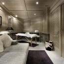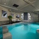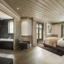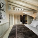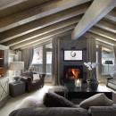 This multi-storied, classic Alpine chalet offers up a range of terraces and verandahs. Inside, the basement level features a gorgeous and contemporary swimming pool, spa with massage room, hammam, a home theater, and lounge. The first floor offers a great room that gazes out towards the view and opens to the terrace. It includes the classic heavy beams, wooden walls and floors, and a stone fireplace. The living room is cozy with its oversized banquette and armchairs. It opens to the dining room, and this leads to the gourmet-friendly modern kitchen.