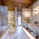 Bedroom 5: Lower ground floor bedroom with a double bed, dressing room, WiFi, and en-suite bathroom with bathtub, vanity and WC. 2 guests maximum.