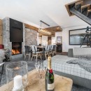 A two-story, four-bedroom gem, it flawlessly merges iconic chalet design with contemporary lines and looks. You'll notice this right away as you enter the great room. With its modernistic fireplace, amazing winding stairs and its use of stone flooring and even stone on the walls, as well as wood, it is a fusion of styles. The great room offers a lounge that gazes out to the balcony and views. Nearby is the dining suite that sits cozily near the fire, and this is but steps from the gourmet kitchen. Equipped with the finest gear, it is a delight for even discerning cooks.