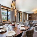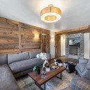 This exquisite dwelling has been meticulously crafted to seamlessly align with the Alpine architectural ethos. Wood takes center stage, adorning the parquet flooring, walls, and a stunning open kitchen. An array of wood varieties harmoniously blends with the grandeur of the stone fireplace. The living room's seating arrangement offers unparalleled comfort, cocooning you in tranquility and softness, a welcome respite after a day on the slopes. A soothing grey palette exudes calmness and amplifies the abundant natural light streaming in through the numerous windows.