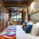 Accommodating up to 10 guests in five uniquely designed bedrooms, this chalet is an ideal winter retreat for a large family or group of friends. Nestled discreetly on the mountainside at the forest's edge above Val d'Isère in the hamlet of Les Carats, it offers breathtaking views of the snowy peaks across the valley. You can ski out from the property to connect with the piste at the end of the road, making the l'Olympic lift just a 2-minute ski away.