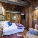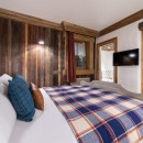 The top floor houses the spacious and elegant master suite, equipped with a fireplace, TV, dressing area, and a spa bath with mountain views in the en-suite, which also has a separate shower. Three balconies offer panoramic vistas and a perfect spot to watch the snowfall.