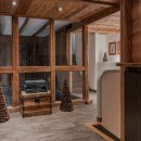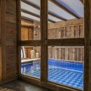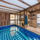 This luxury chalet also boasts a splendid wellness haven on the garden level. The pool's azure shimmer captivates the eye, while the spa area, complete with a hammam, invites relaxation. Through a sweeping panoramic window, you can admire the mountains and snow-covered landscapes, enhancing your rejuvenation experience.