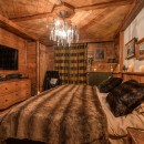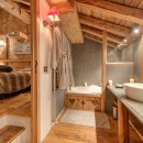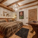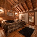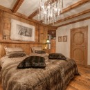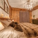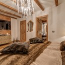 Le Rocher features seven elegantly styled bedrooms, each with an en-suite bathroom and integrated AV system. Crafted from reclaimed wood sourced in Mongolia and adorned with intricately carved Alpine furnishings, the rooms exude warmth and character. The expansive primary suite is a standout, offering dual dressing rooms and one of the largest layouts in the resort.