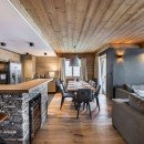 One of only seven apartments in the building, it has all of the hallmarks of a classic mountain chalet. Wood paneling and ceilings, an enormous stone fireplace, and multiple wooden balconies give it plenty of Alpine charm. Yet it is packed with modern conveniences and luxuries that make it a wonderful balance of old and new. Enter into the spacious foyer and you immediately catch sight of the great room. Here you have an enormous, gourmet kitchen with stone surround and wine cooler. A breakfast bar allows a quick cup of coffee as you head out for a day on the slopes, but a full dining room with views out to the balcony is ideal for evening meals together.