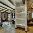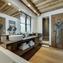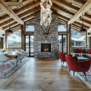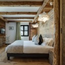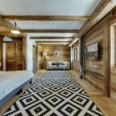 The essence of Shar Pei resides in the luminous ambiance that bathes the top floor through its south-facing windows. Majestic reclaimed wood beams and a wrap-around terrace foster an open spatial feel, seamlessly integrating the surrounding mountains into the chalet's design. Natural stone and wood floors resonate with the rugged beauty of the environment, while soft linens and natural wools harmonize with bespoke industrial pieces crafted for the property from a family cherry farm near Paris. Michel Covarel, the architect, masterfully captures the timeless charm, evident in Shar Pei's flawless architecture. Nature's artistry suffices here; there's little need for additional adornment.