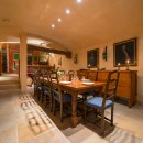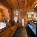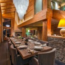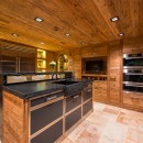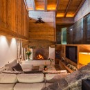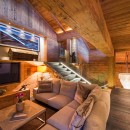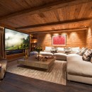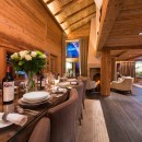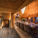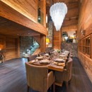 This residence offers a plethora of remarkable living spaces tailored for the discerning skier. The dining room features a striking double-height ceiling adorned with cascading glass petals of a magnificent chandelier. Around the grand stone fireplace, a regal table comfortably seats twelve guests, perfect for indulging in exquisite culinary creations prepared by the private chef. Chalet Makini boasts an extensive wine selection, including rare vintages like Chateau Latour 1985 and various Chateau Margaux Grand Vin 1er Cru, including a singular bottle from 1934, available for Haute Montagne guests.
