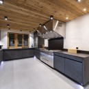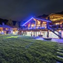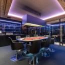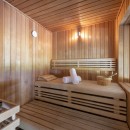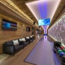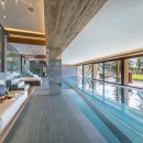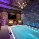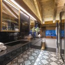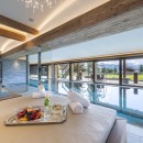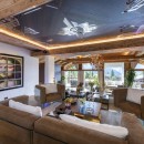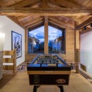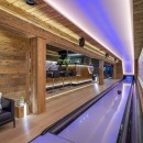 The entire ground floor of the main chalet is dedicated to entertainment. Highlights include a 17-meter indoor swimming pool with floor-to-ceiling windows, a sunken outdoor hot tub, well-equipped gym, sauna, hammam, bar and billiards area, gaming room, poker room with panoramic wine cellar, games area, and a bowling alley. Additionally, there is a large professional kitchen with a service elevator.