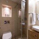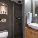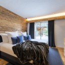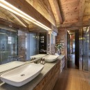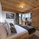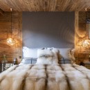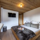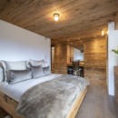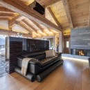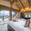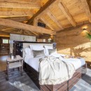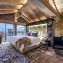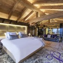 The top floor of the main chalet is dedicated to two impressive master bedroom suites. Each suite has its unique style and design, featuring a king-sized bed, walk-in wardrobe, small living area with an open fireplace, state-of-the-art entertainment system, and en-suite shower room. The second suite enjoys similar facilities with the addition of an en-suite bathroom. Both suites have private balconies with breathtaking views of the snow-covered mountains.