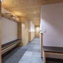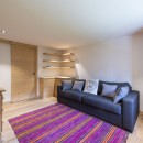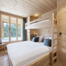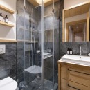 Downstairs, you'll find two more bedrooms: a double with an en-suite shower room and a children’s bunk room with a separate bathroom. All rooms have blackout curtains and access to a private hedged terrace. This level also includes a ski room with heated boot racks and a private entrance, plus a utility room with a washer and dryer.