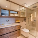 The dining table comfortably seats ten, and it is thoughtfully separated from the well-appointed kitchen by a convenient breakfast bar. For those needing to attend to work-related matters, a quiet office is also situated on this floor. And if the younger members of the group desire their own space, a mezzanine chill-out area nestled in the eaves of the roof provides a cozy retreat.