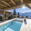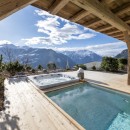 The chalet's impressive spa is located on the ground floor, featuring a heated indoor/outdoor swimming pool for relaxation and rejuvenation after a day on the slopes. The outdoor hot tub faces the vast and stunning mountainscape.