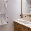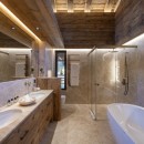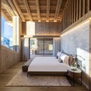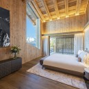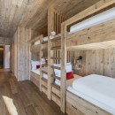 Two beautifully finished en-suite double bedrooms are located on this floor, one of which can be configured as a twin if needed. These bedrooms are decorated in a pared-back, zen style with large windows, generous storage, desks, and tasteful light fixtures, providing a relaxing haven. Additionally, a quad bunk bedroom with cozy alpine patterns and textiles is ideal for children.