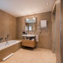 The main living spaces are embellished with lavish sofas, enveloping grand stone fireplaces. After an exhilarating day on the slopes, indulge in a serene afternoon tea while youngsters find entertainment in the apartment's dedicated playrooms featuring Apple TV. A convenient guest toilet is also found on this level. Notably, Alex comprises two distinct apartments that can be rented individually. Alternatively, they can be seamlessly combined using internal doors to create a unified living space.