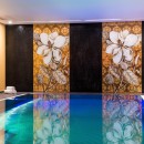 Descending to the lower ground floor of Chalet Shalimar, you'll encounter the shared spa haven. Here, a splendid indoor pool, sauna, hammam, and massage room await, shared with the adjacent four-bedroom apartment, Elena, located on the ground floor.