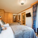 Your entrance to the apartment is on the primary sleeping floor, the first level. Here, six twin/double bedrooms await, each adorned with en-suite bathrooms and balconies. The two master bedrooms grant uninterrupted vistas of the iconic Matterhorn. The interiors are bathed in natural light, exuding an air of spaciousness. Crafted with the utmost attention to detail, the furnishings boast exceptional quality, and all the bathrooms are equipped with separate baths and invigorating power showers. An elevator transports you to the upper levels, where you'll find the expansive living and dining areas, suffused with light.