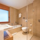 Bedroom 4: Ground floor bedroom with a king-size bed (can be made up as two single beds), TV, access to terrace and garden and en-suite bathroom with bathtub, shower, vanity and WC. 2 guests maximum.