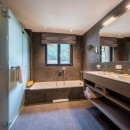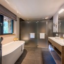 Spanning two luxurious floors, this abode houses a total of seven meticulously designed bedrooms. Each bedroom is a haven of comfort, thoughtfully furnished with desks, TVs, and safes. Spaciousness abounds, with large super king-size beds that can also be configured as twins. Most bedrooms feature private or shared terraces, some even adorned with cozy seating nooks. Among them, five bedrooms boast en-suite or private shower/bathrooms, while two bedrooms share a bathroom. Should you desire, these bedrooms can be sectioned off to form a family suite. The master bedroom, a true sanctuary, treats you to breathtaking Matterhorn views, a wood-burning fireplace, an en-suite bathroom, a walk-in wardrobe, and an expansive terrace.