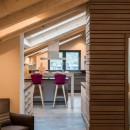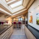 Adding to the opulence, the penthouse apartment boasts a private sauna, ideal for unwinding tired muscles after a day of mountain adventures. Entertainment is elevated with a cinema room on the top floor, adjacent to the main open-plan living and dining space. The extensively equipped kitchen boasts a charming breakfast bar, offering an ideal vantage point for savoring a glass of wine while observing your chef at work. The vistas from the kitchen window encompass the charming town of Zermatt.