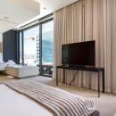 Bedroom 1: First floor Master bedroom with a king-size bed, A/C, projector TV, automated blinds, office area, private balcony and en-suite bathroom with bathtub, shower, double vanity and wc. 2 guests maximum