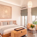 Bedroom 3: Bedroom with a king-size bed, A/C, private garden patio , and en-suite bathroom with rain shower, vanity, and WC. 2 guests maximum