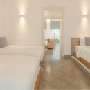 Bedroom 2: Bedroom with a king-size bed and a connecting room with three single beds,  A/C, private garden patio, and en-suite bathroom with rain shower, vanity, and WC. 5 guests maximum