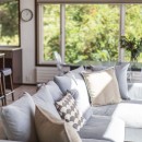 Casa La Mount exudes timeless charm, with its refined yet cozy interior. Thoughtfully furnished and styled with modern elegance, the chalet features expansive bedrooms, luxurious decor, and a warm, welcoming ambiance. The open-plan living area is air-conditioned and centered around a plush designer sofa, while soaring ceilings and full-wall gable windows frame breathtaking panoramic views of the Niseko Valley and Konbu Range. Sunlight streams in, highlighting the rich wooden tones that define the home’s mountain character.