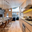 Foxwood B, Neiseko. You know those scenes from films that have a house of architectural wonder lit against a dark sky, suspenseful music or crickets chirping, and the camera moves to the windows to allow you to see what's going on inside? Well, now you get to be inside such a house. Well-appointed furniture and thoughtful design lets a family be both comfortable and fashionably cool. Located near Niseko Village this brand new estate is close to the ski lifts, famous Milk Kobo Farms, and renowned restaurants.
